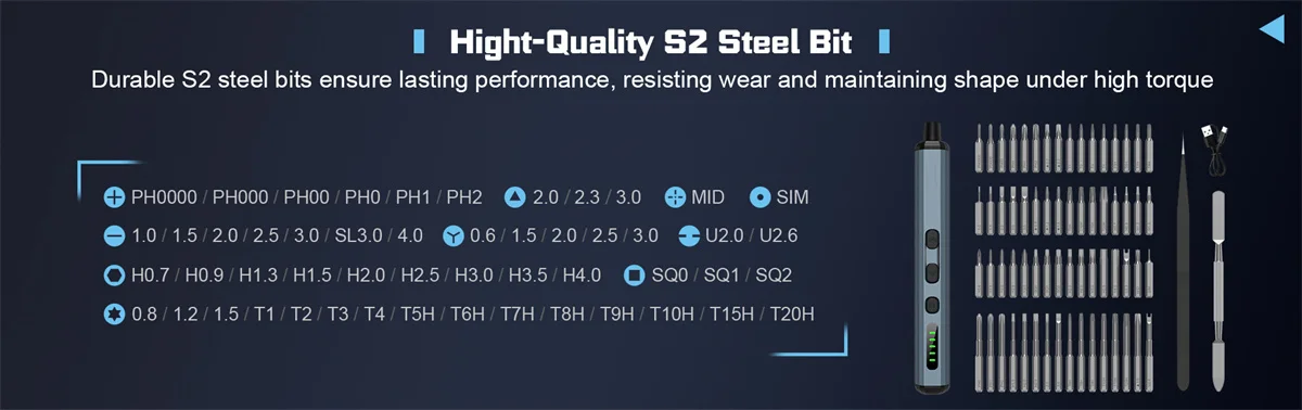 - • S2 Hardened Steel Bits: Includes 64 professional, magnetic bits, engineered for extreme durability and precision.