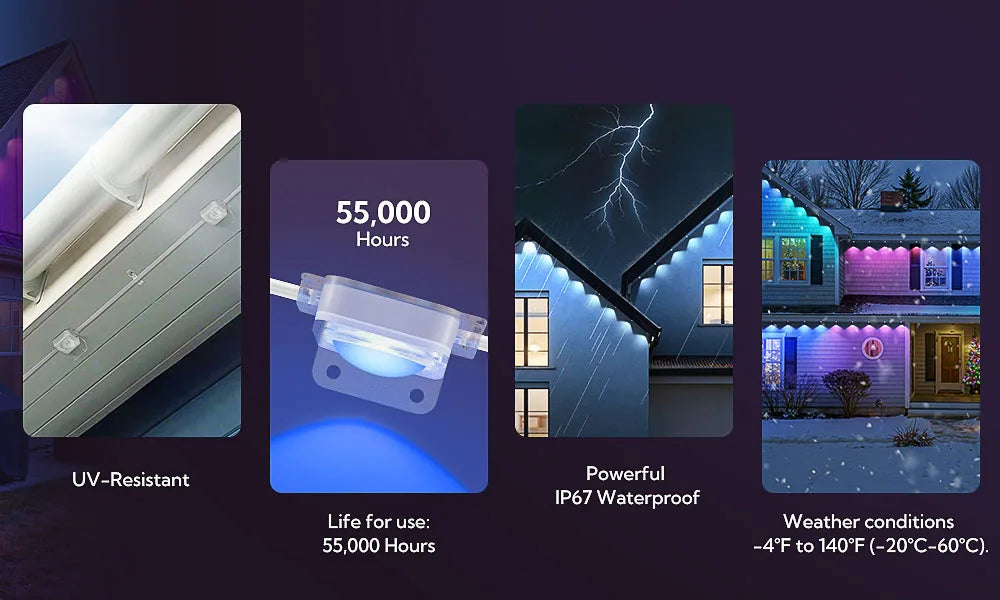Upgrade your home decor with our 300ft Permanent Outdoor Eaves Lights — featuring 16 million colors, music sync, and full app control for effortless customization.